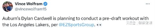 根据记者文斯-沃法姆报道,湖人次轮签似乎有了新选择,球队已经试训来自奥本大学的中锋戴兰-考德威尔,由于在NCAA打了五年球,所以他是典型大龄中锋,甚至存在选秀大会名落孙山可能性。